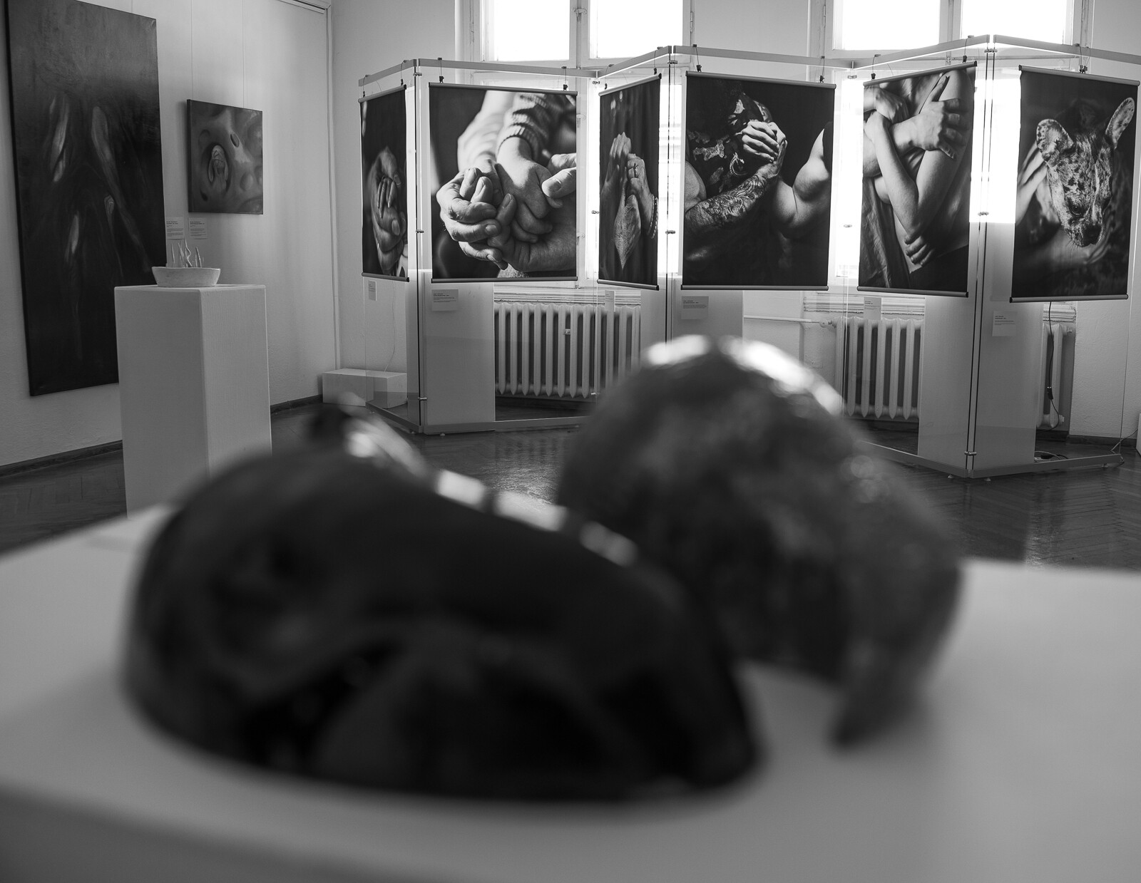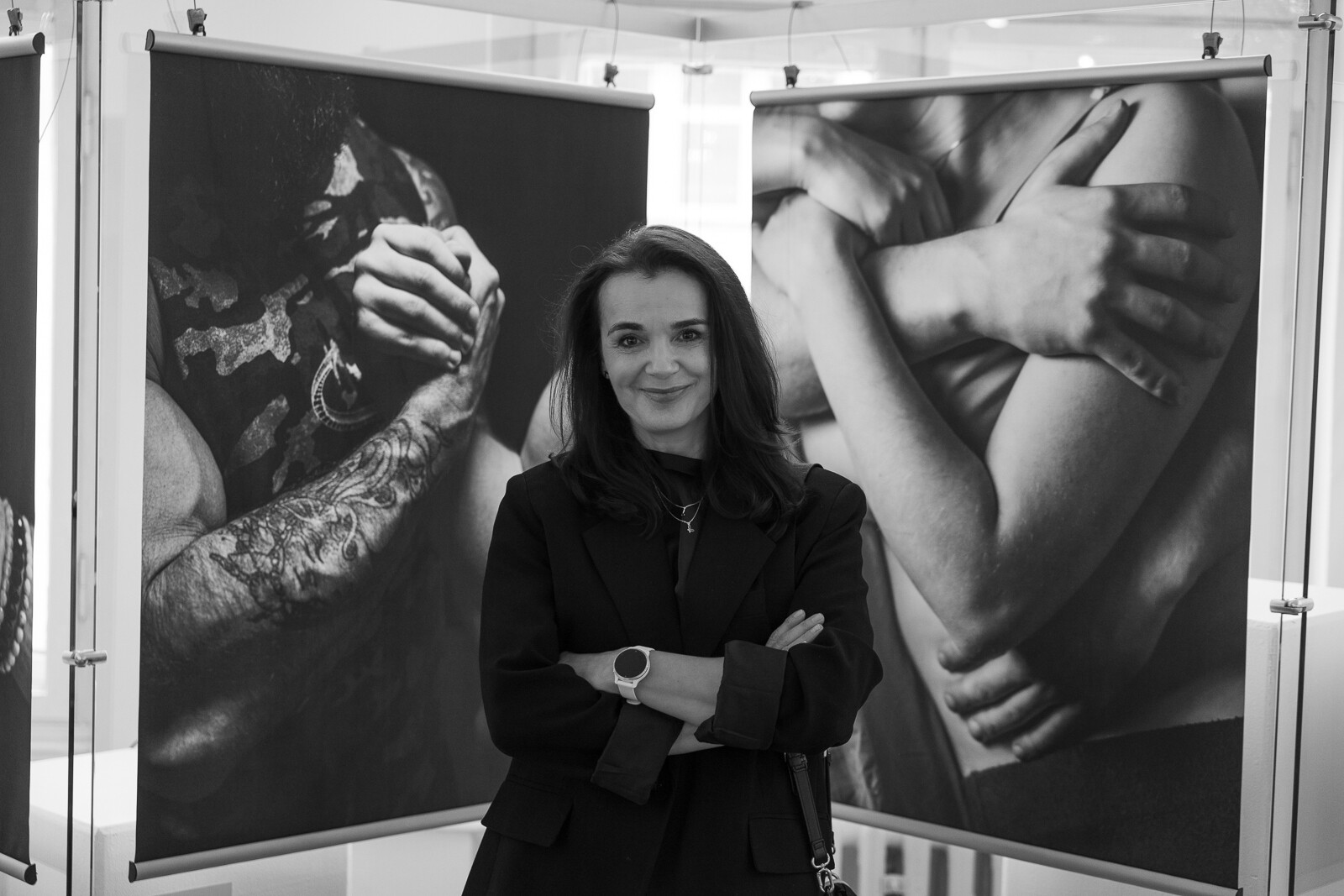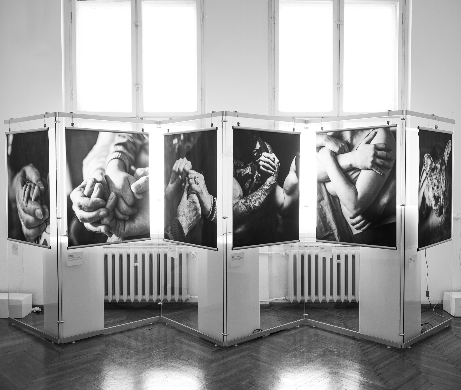 Istotnym elementem mojej części wystawy jest również cykl fotografii „Portrety czułości”, który przygląda się czułości jako jednemu z najbardziej pierwotnych doświadczeń relacyjnych. Czułość bywa jednym z pierwszych doświadczeń zapisujących się w ciele, w niej zaczyna kształtować się poczucie bezpieczeństwa oraz zaufania do świata. Fotografie opowiadają o różnych wymiarach tej relacji: o pierwszym doświadczeniu bliskości, o uczeniu się rytmu drugiej osoby, o potrzebie czułości, która nie znika wraz z dorastaniem, lecz zmienia swoje formy. Pokazują także, że prawdziwa siła relacji może ujawniać się w spokojnej obecności, w byciu obok bez dominacji, w zgodzie na wrażliwość.