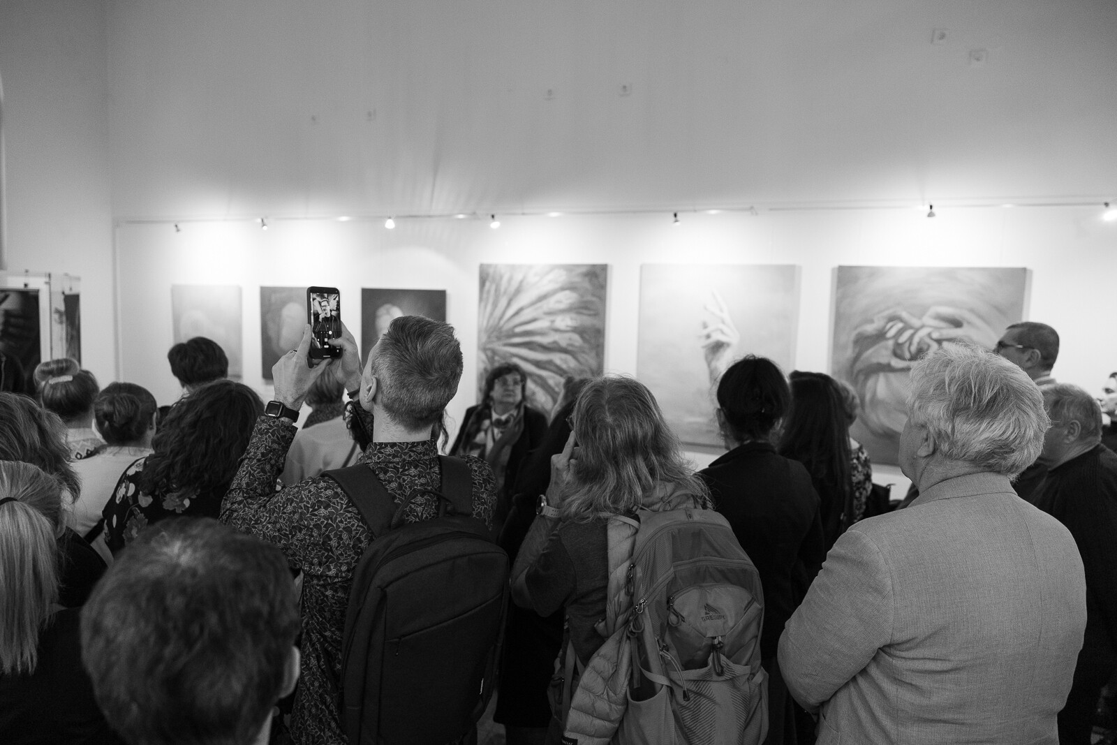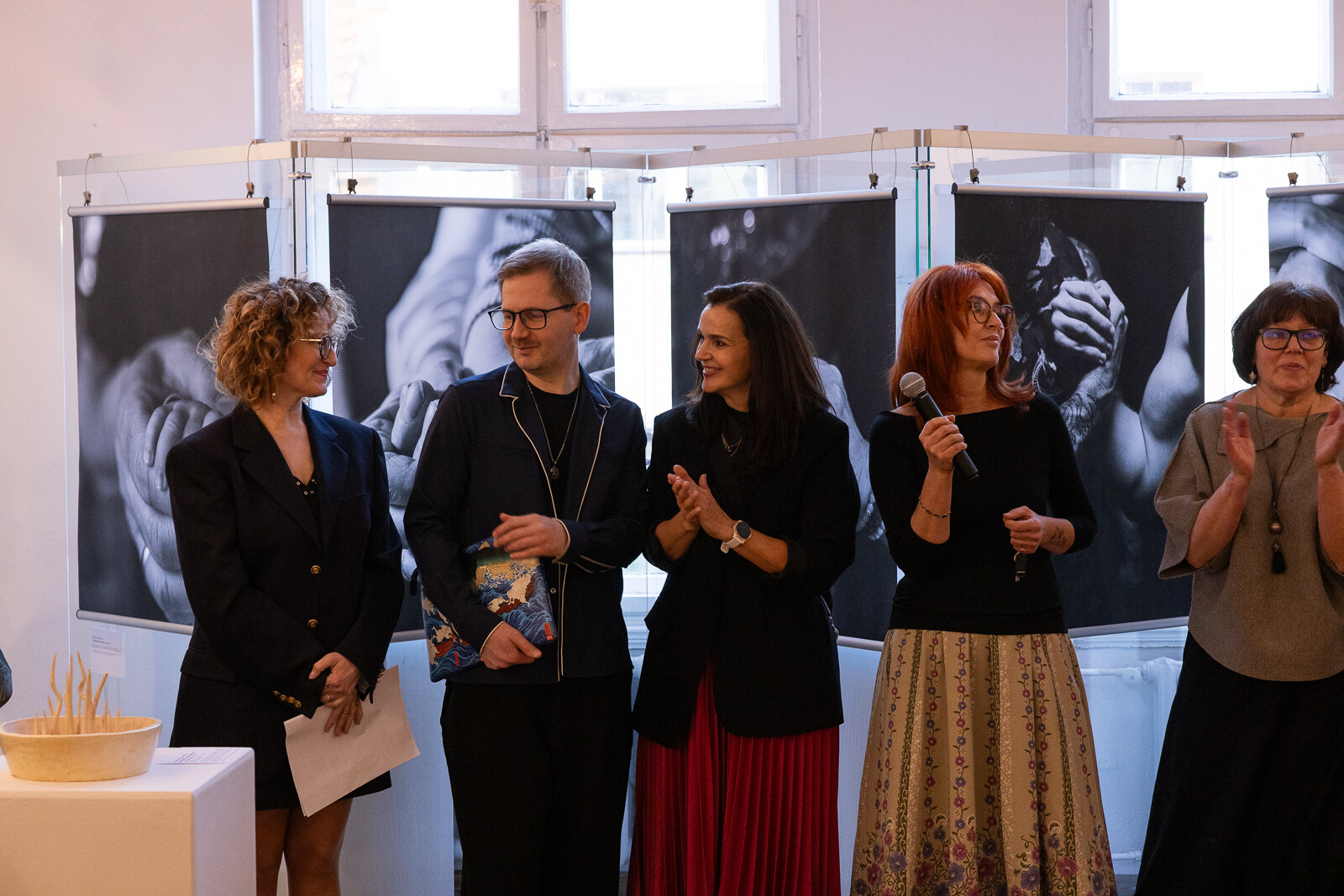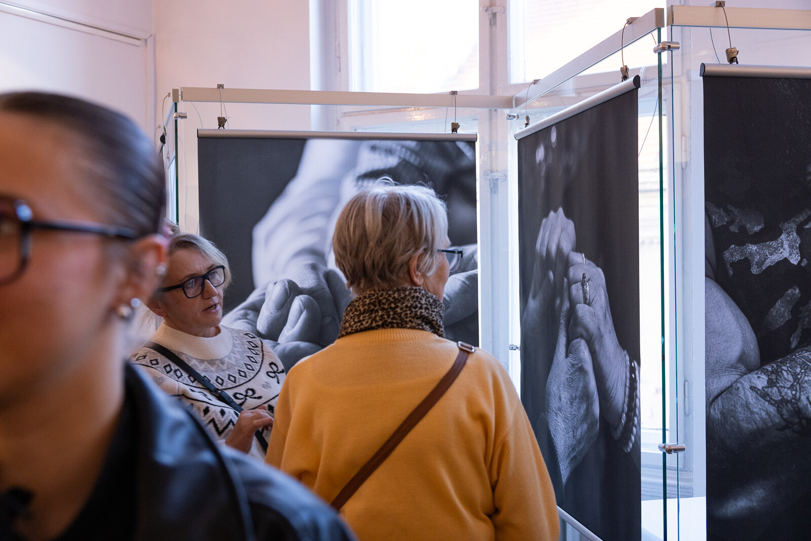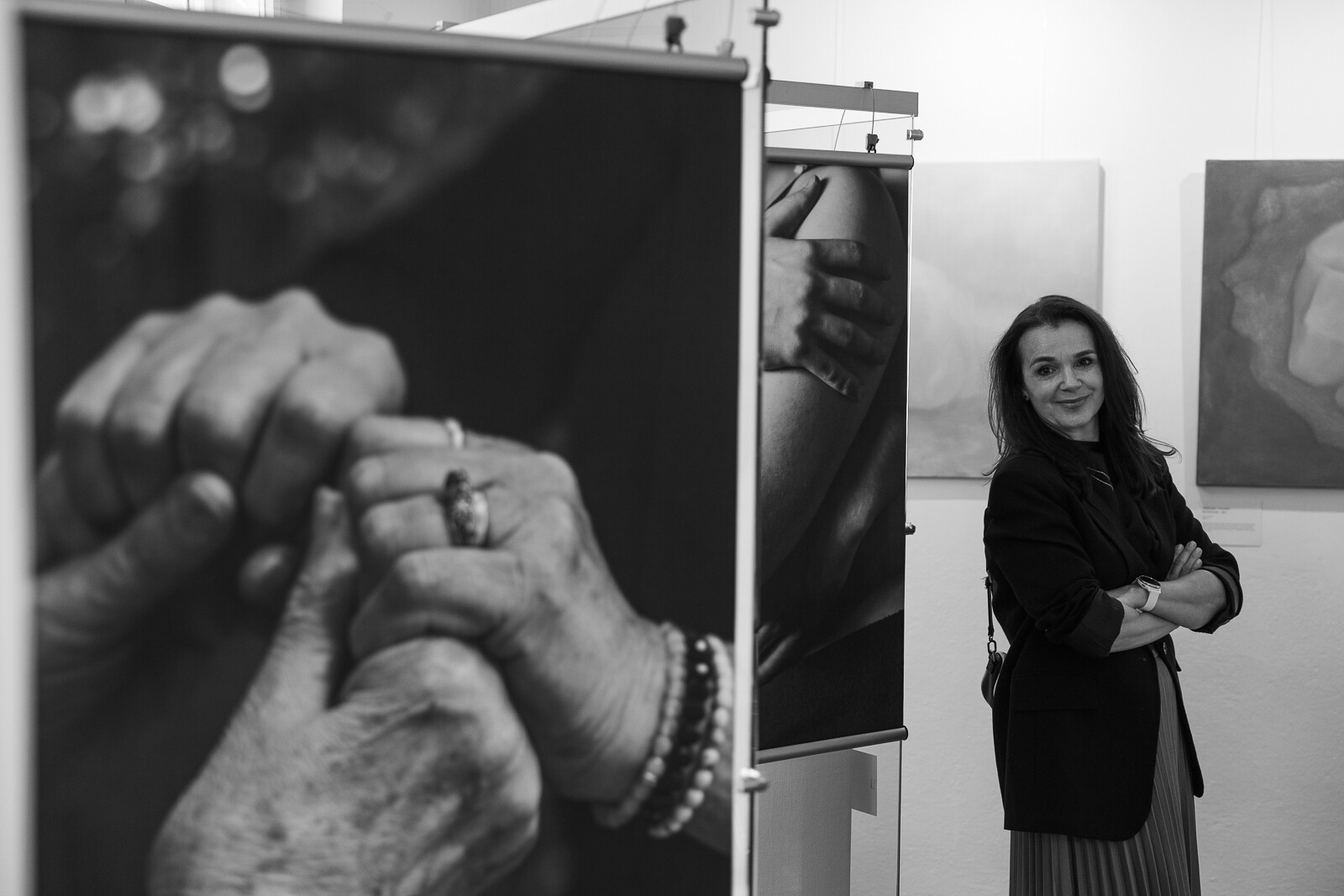 Istotnym elementem mojej części wystawy jest również cykl fotografii „Portrety czułości”, który przygląda się czułości jako jednemu z najbardziej pierwotnych doświadczeń relacyjnych. Czułość bywa jednym z pierwszych doświadczeń zapisujących się w ciele, w niej zaczyna kształtować się poczucie bezpieczeństwa oraz zaufania do świata. Fotografie opowiadają o różnych wymiarach tej relacji: o pierwszym doświadczeniu bliskości, o uczeniu się rytmu drugiej osoby, o potrzebie czułości, która nie znika wraz z dorastaniem, lecz zmienia swoje formy. Pokazują także, że prawdziwa siła relacji może ujawniać się w spokojnej obecności, w byciu obok bez dominacji, w zgodzie na wrażliwość.
