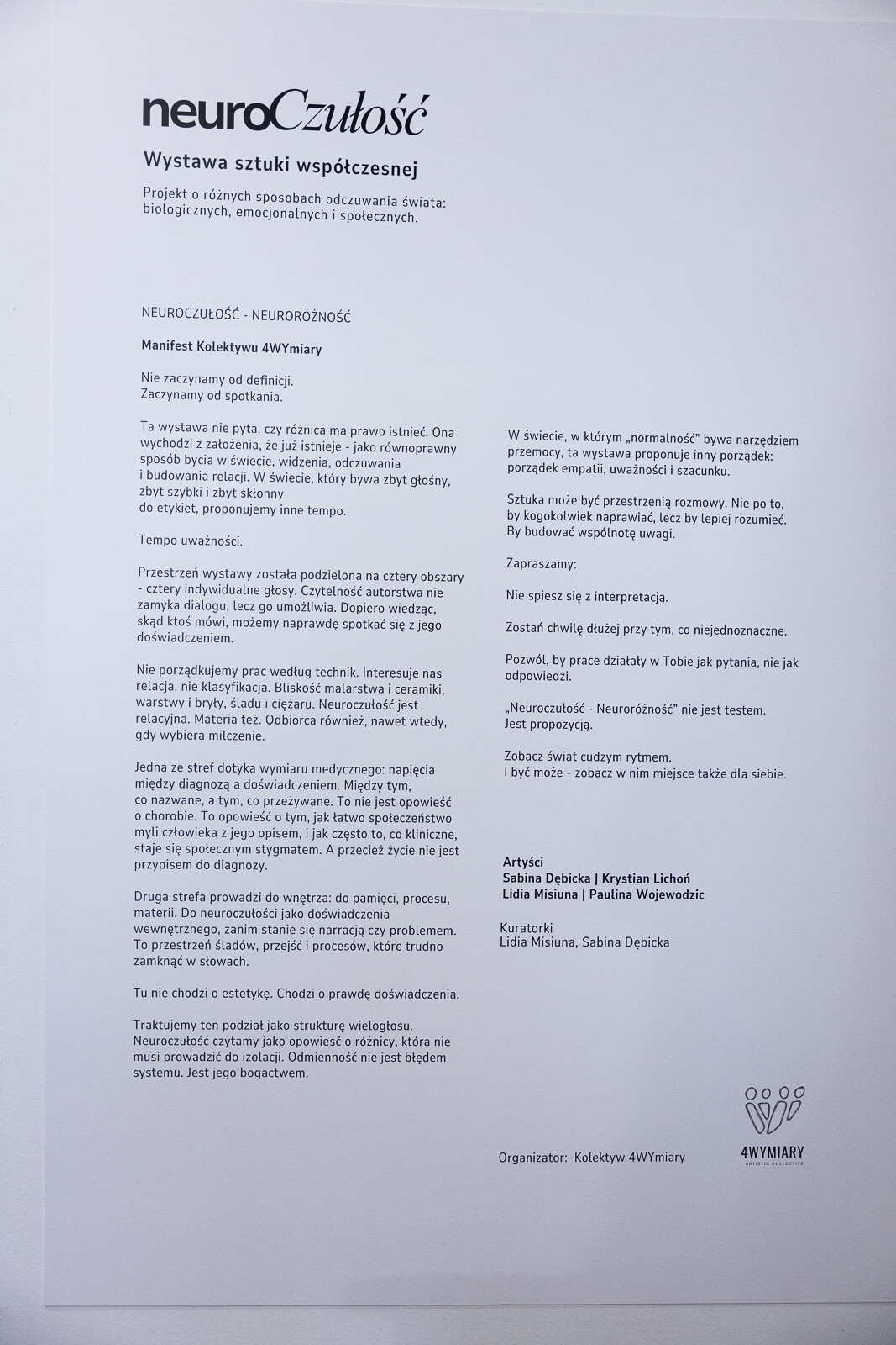W działaniach Kolektywu 4 WYmiary sztuka jest przestrzenią rozmowy. Nie po to, by kogokolwiek naprawiać, lecz by lepiej rozumieć i budować wspólnotę uwagi. „Neuroczułość” traktujemy jako opowieść o różnicy, która nie musi prowadzić do izolacji, przeciwnie, może stać się źródłem wspólnego doświadczenia.